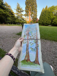 Taking photographs is perfectly fine, and I do it too, but sitting and observing through sketching offers much more than just capturing a beautiful place or object. The more I allow myself to stop looking for the perfect spot and ample time, the more I realise that drawing leads me to observe rather than just glance at my surroundings. I notice colours more vividly, hear nature's sounds, feel the wind, or sense the rain—and yes, you can sketch in the rain! It's not about the final product but the experience of the process.